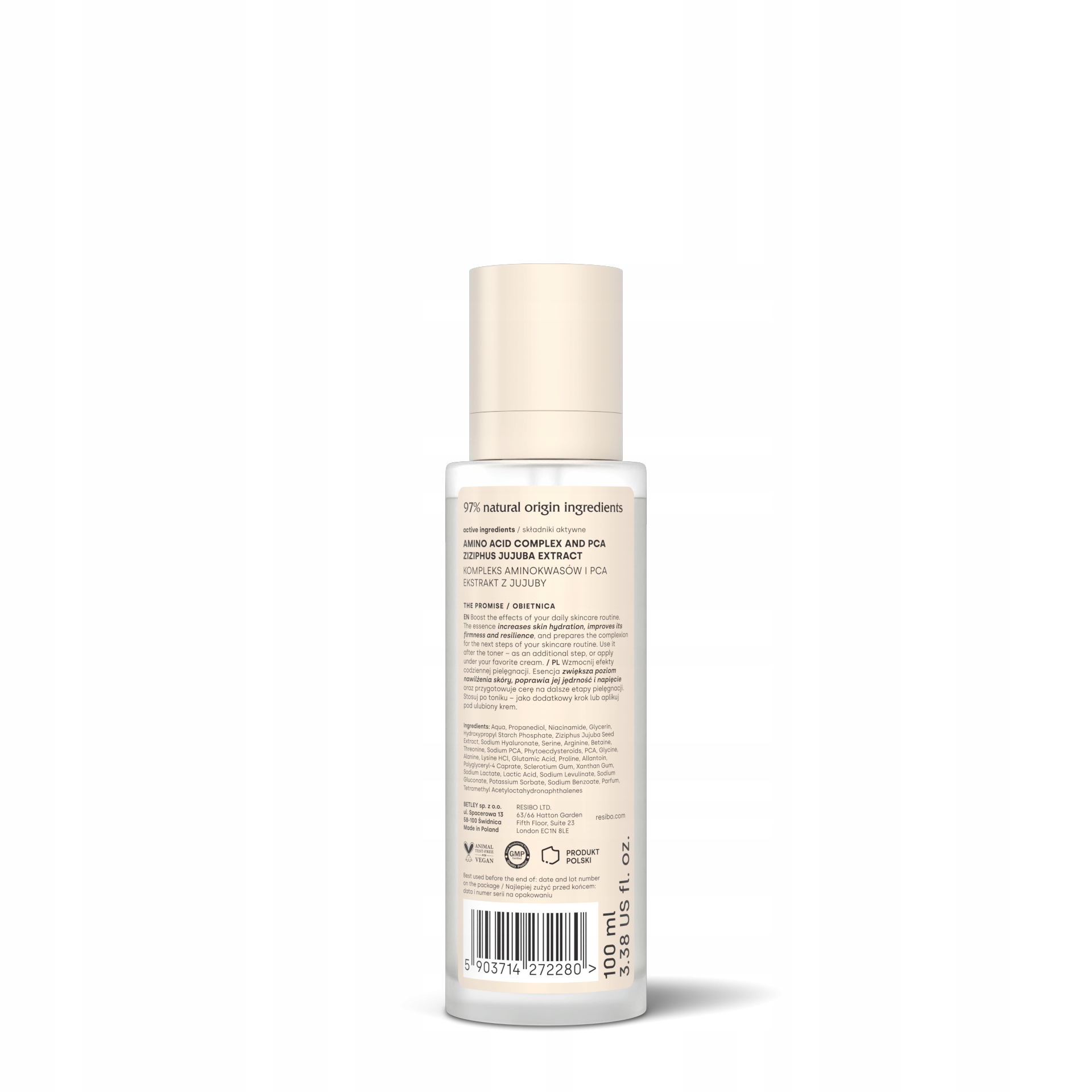 The Muse – esencja hydro-liftingująca Resibo to nowoczesny kosmetyk, który łączy działanie serum i toniku, zapewniając skórze natychmiastowe nawilżenie i efekt wygładzenia.